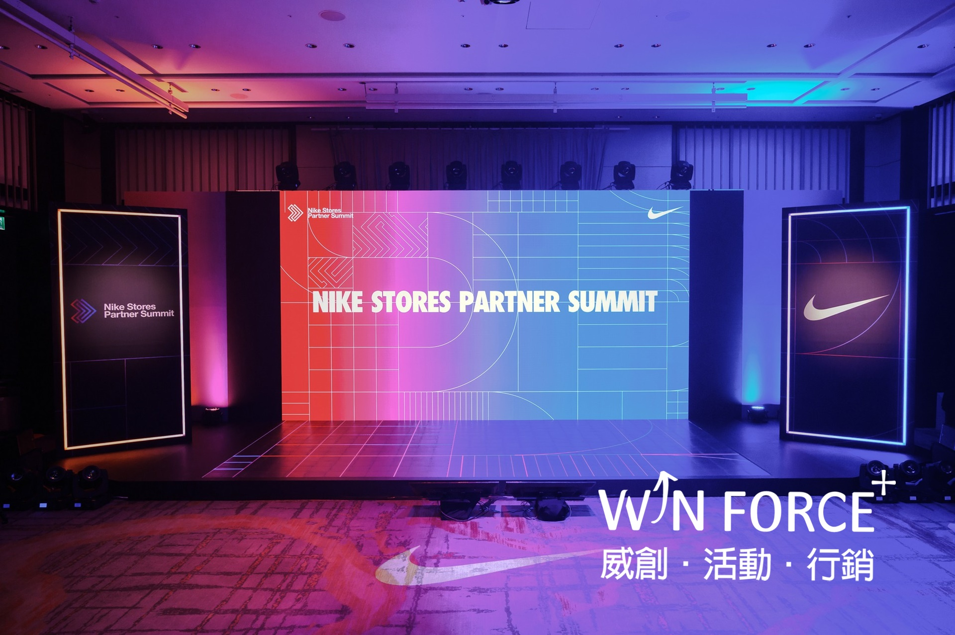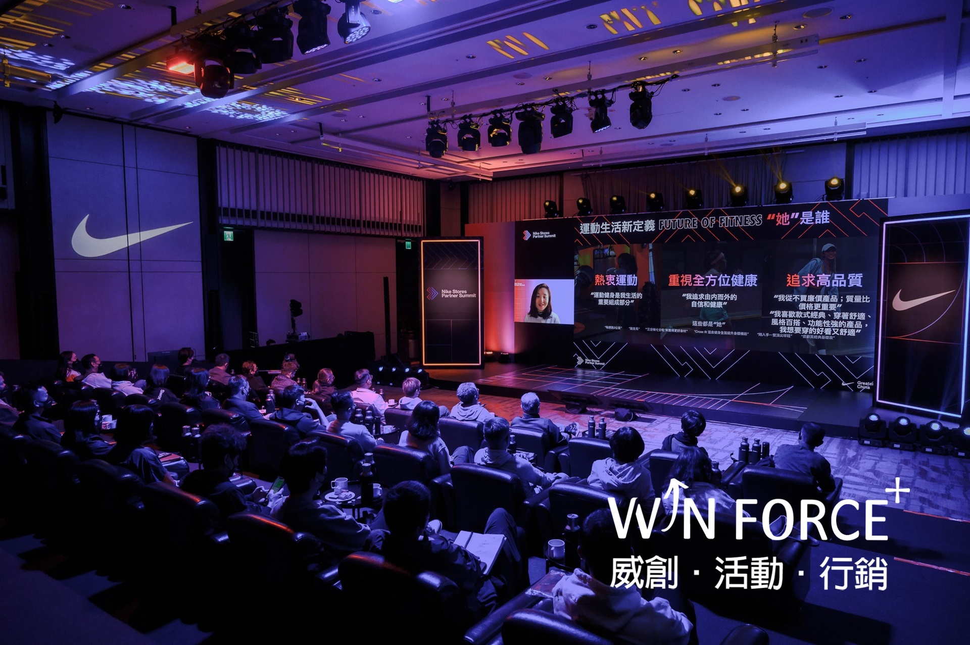 為促進企業關係,彼此同心努力,朝向更好光景,透過創意巧思連串會議,讓Nike的企業願景與未來發展趨勢清晰地展現的經銷商大會。