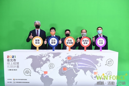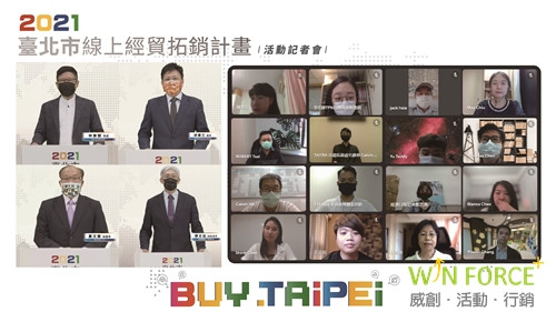 臺北市政府在疫情嚴峻期間積極協助企業持續與全球市場接軌,特別規劃「2021臺北市線上經貿拓銷團」帶領全台北市27家企業一同出海接軌國際,也為了讓更多企業看見市政府的用心,特別規劃活動起跑記者會宣布活動開跑!