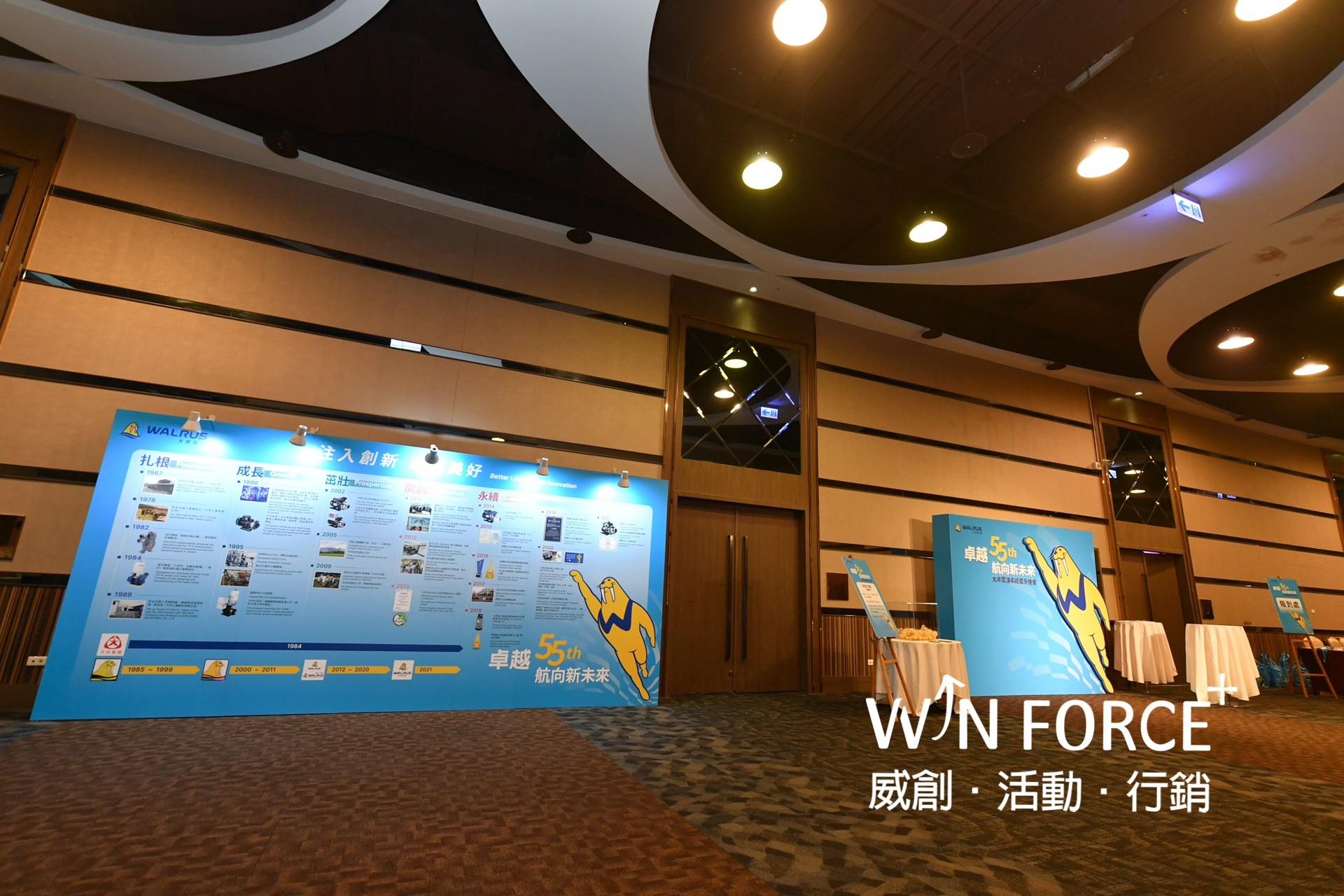 活動前期的企劃與宣傳,其中最具亮點之一的是—時光迴廊空間:將早期開創期到如今拓展業務到海外的種種事蹟整合在歷史牆中,藉此加強品牌核心價值與理念。