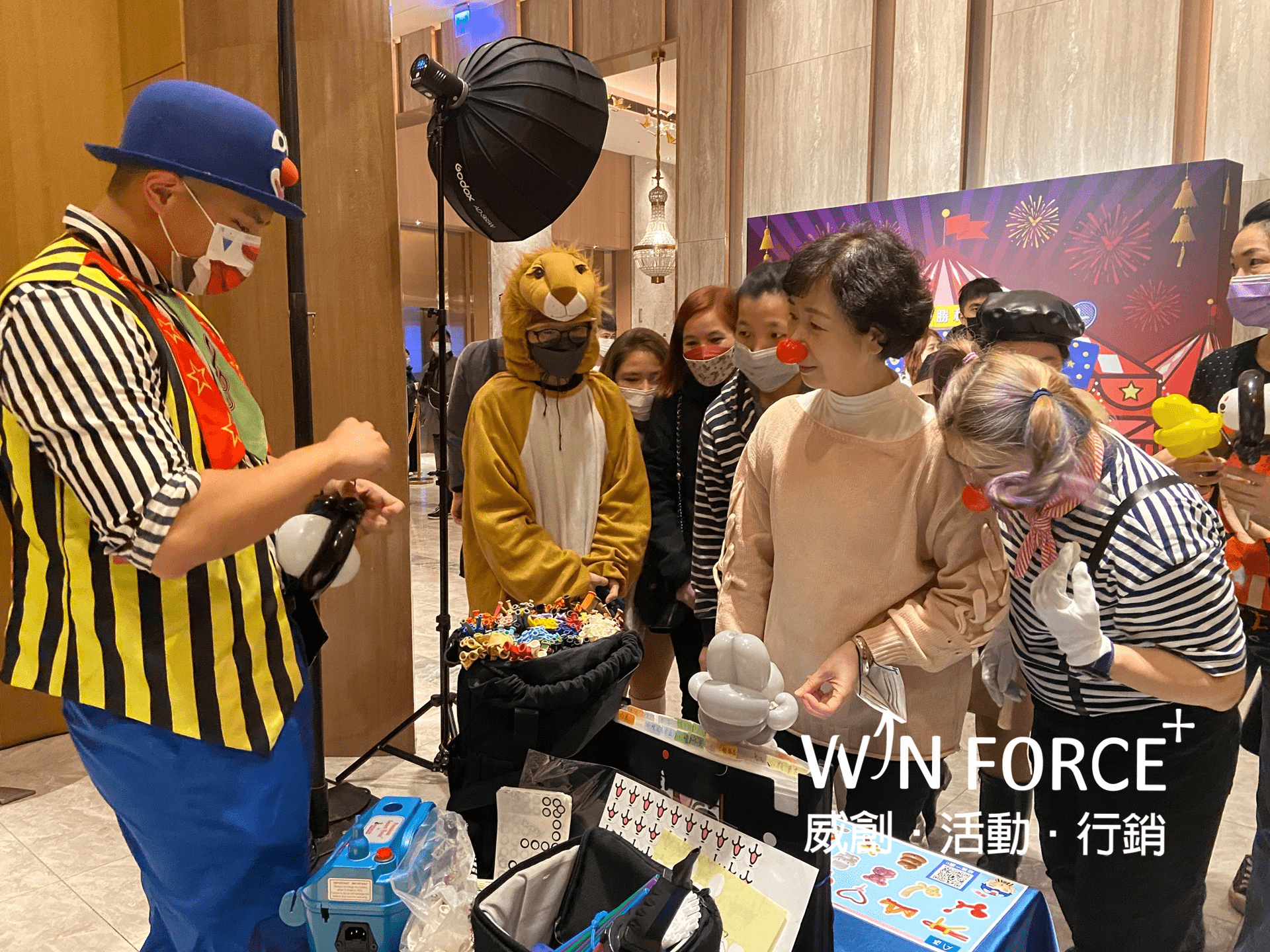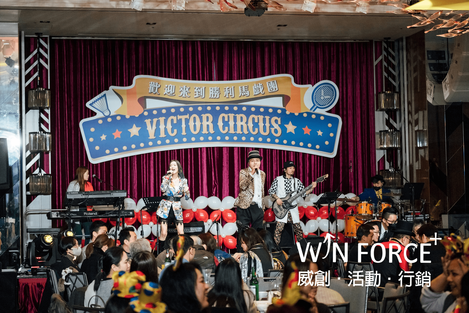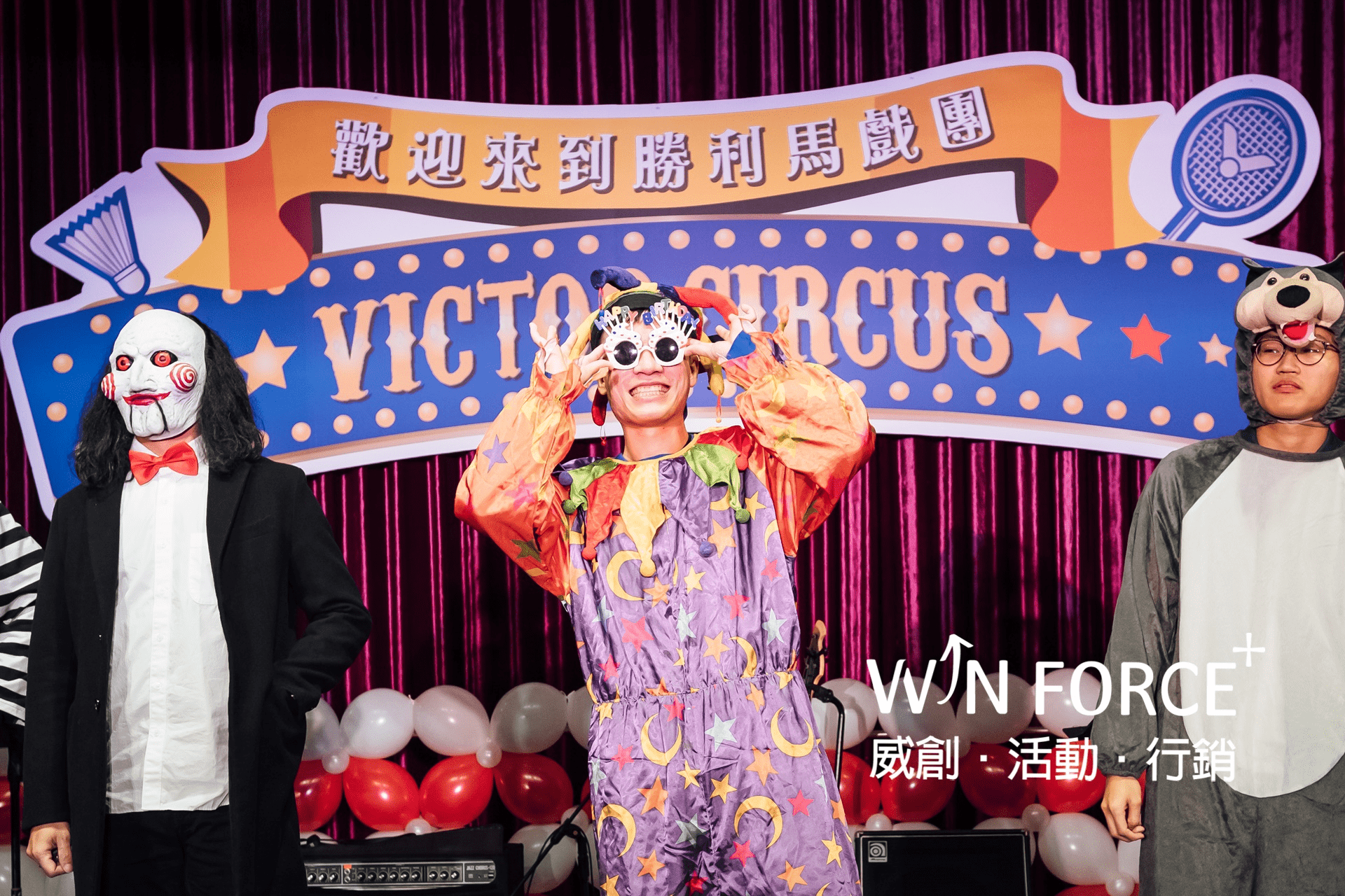透過年終晚會,感謝每一位同仁對公司的付出,並以馬戲團作為主題設計整場晚宴的活動內容,鼓勵同仁盛裝出席今晚盛會,一同比拚誰的打扮最潮、最有特色,才能成為今晚的Party King & Queen。