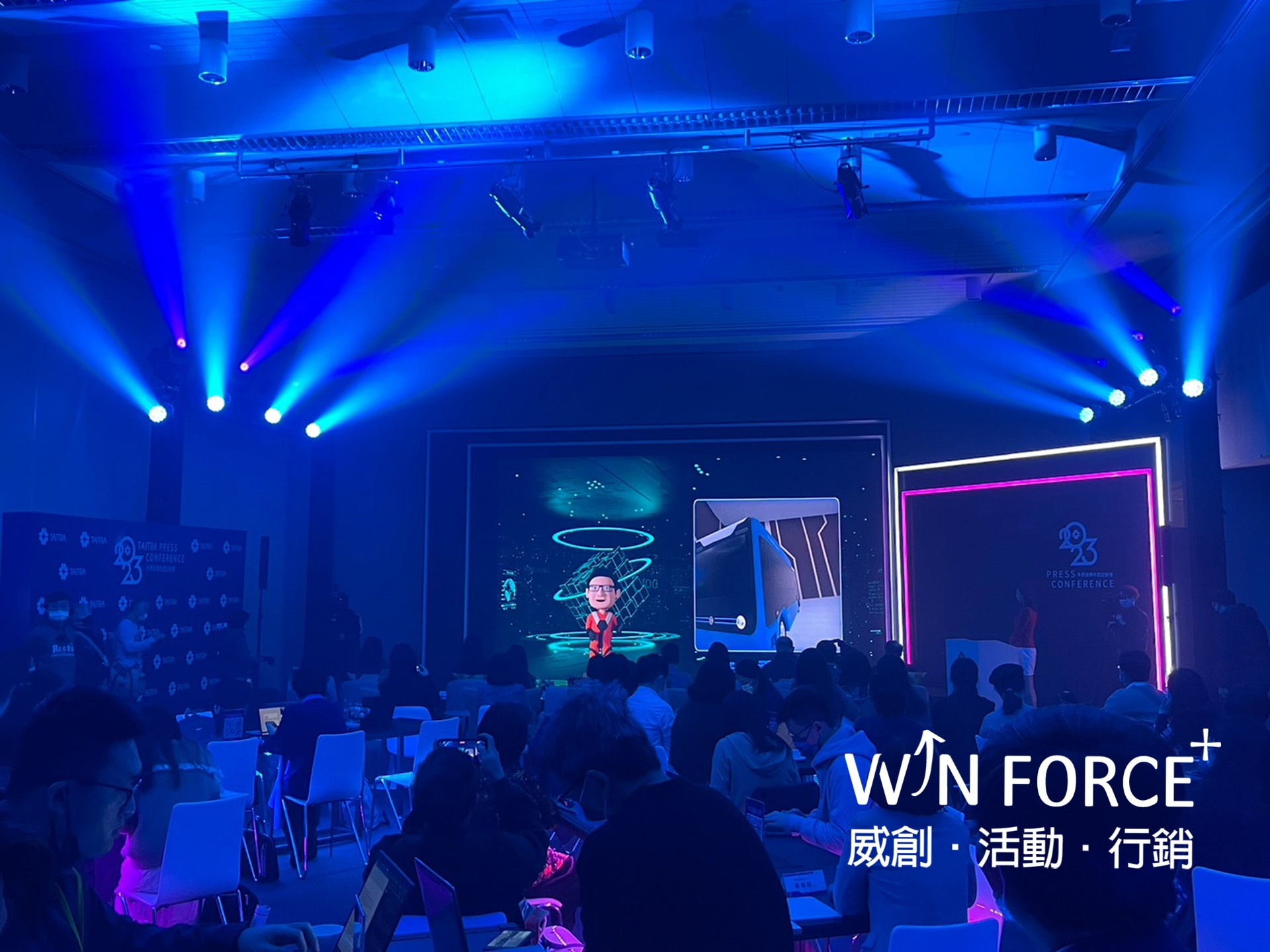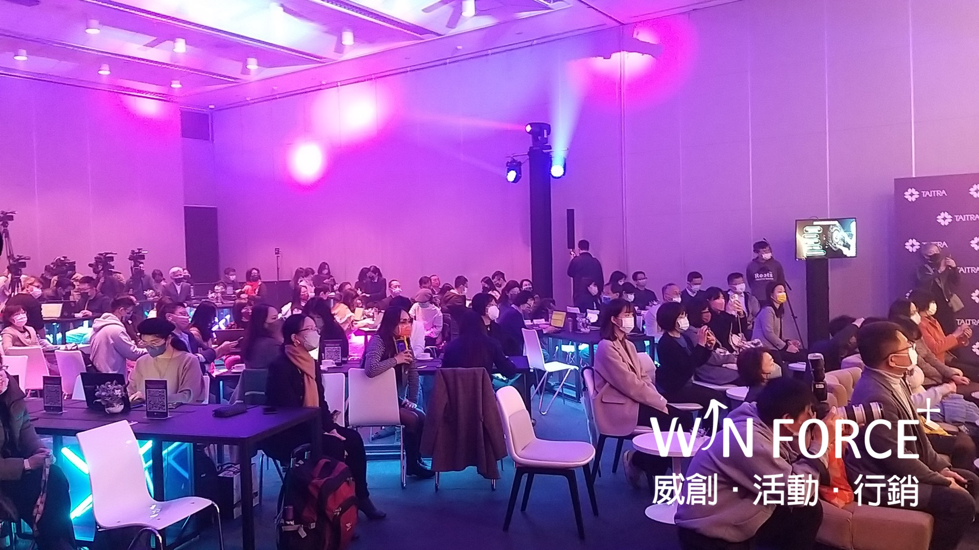 活動整體統籌規劃、影片腳本規劃、拍攝後製一手搞定,在時間有限情況下拍攝影片,並結合動畫效果完成影片剪輯,強化貿協的重點外,也製造現場記者會話題感,現場邀請到國內媒體主線記者,與外媒駐台記者,媒體宣傳效益獲得客戶大大讚賞!