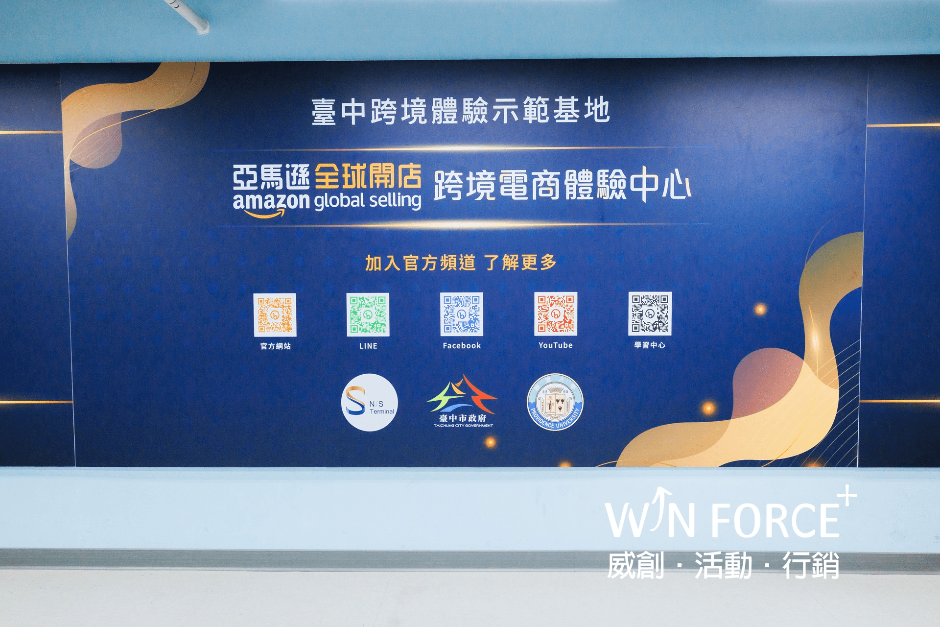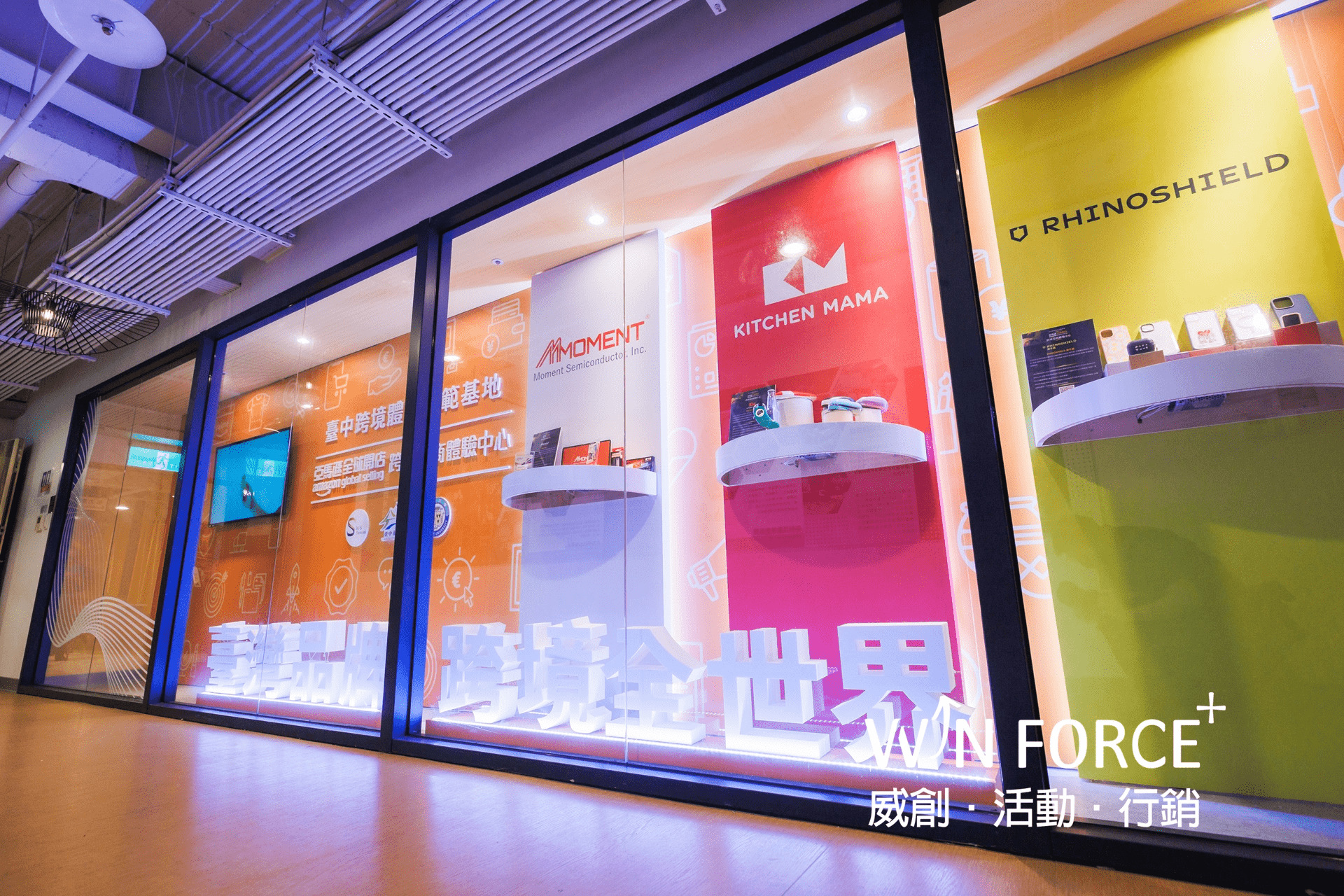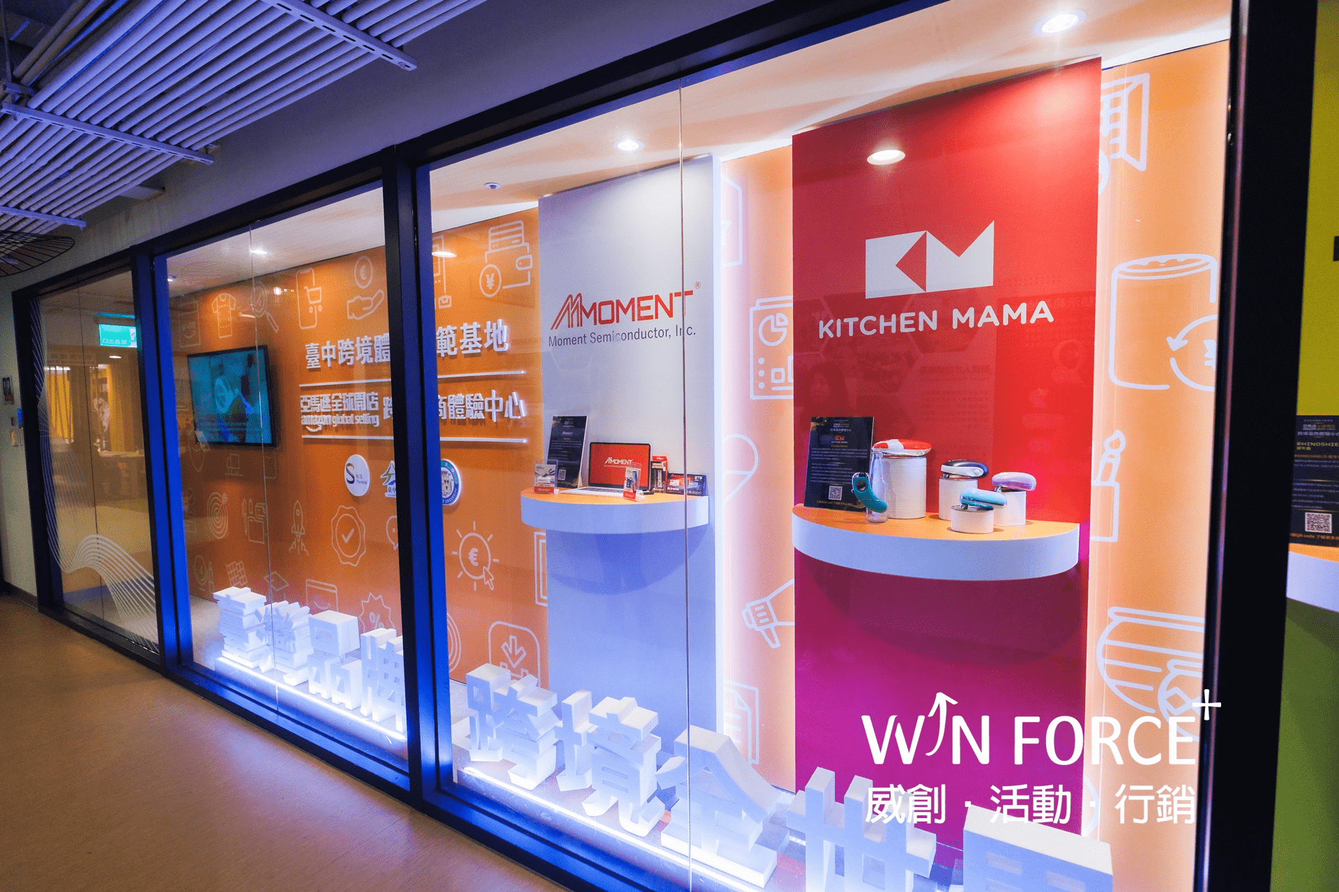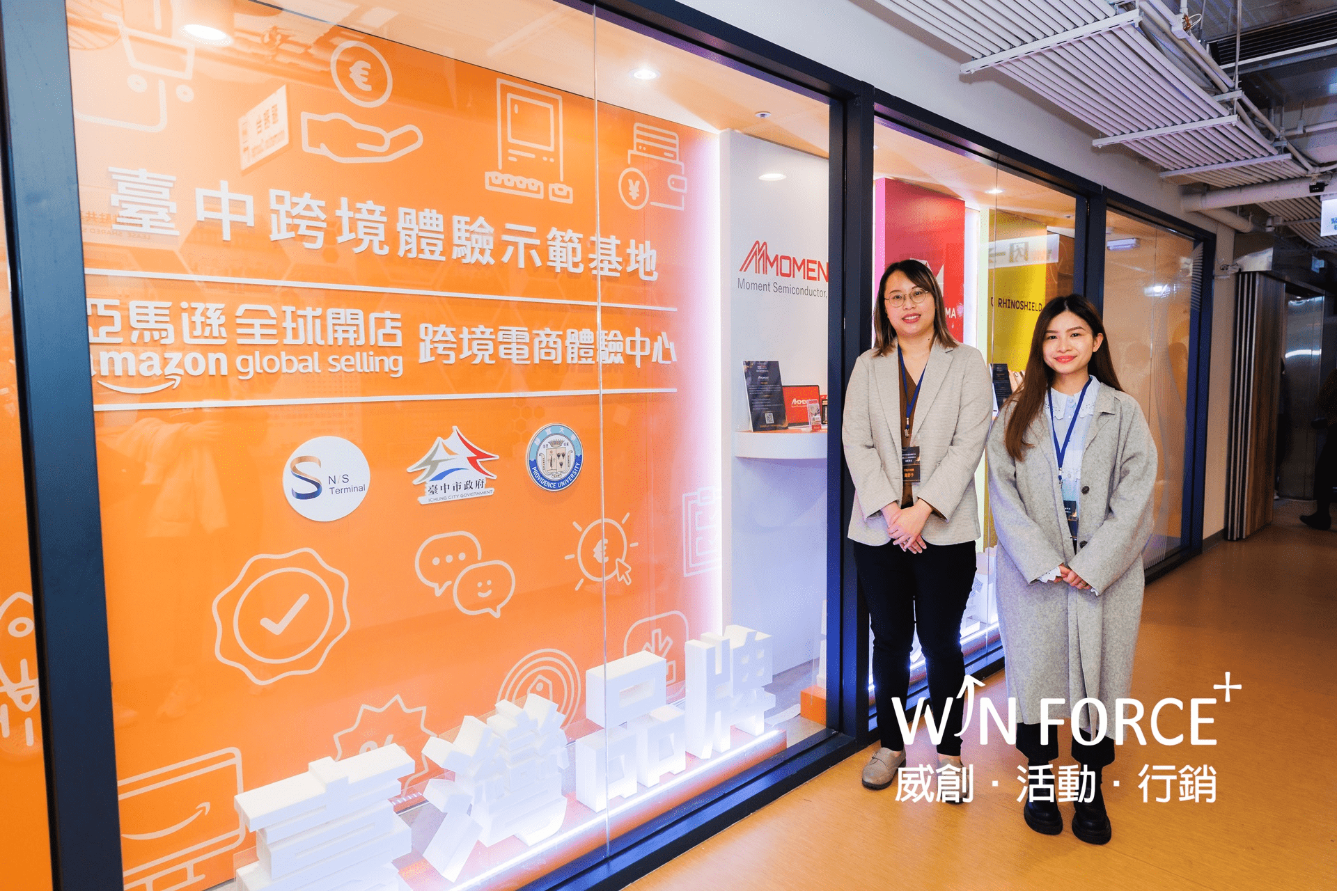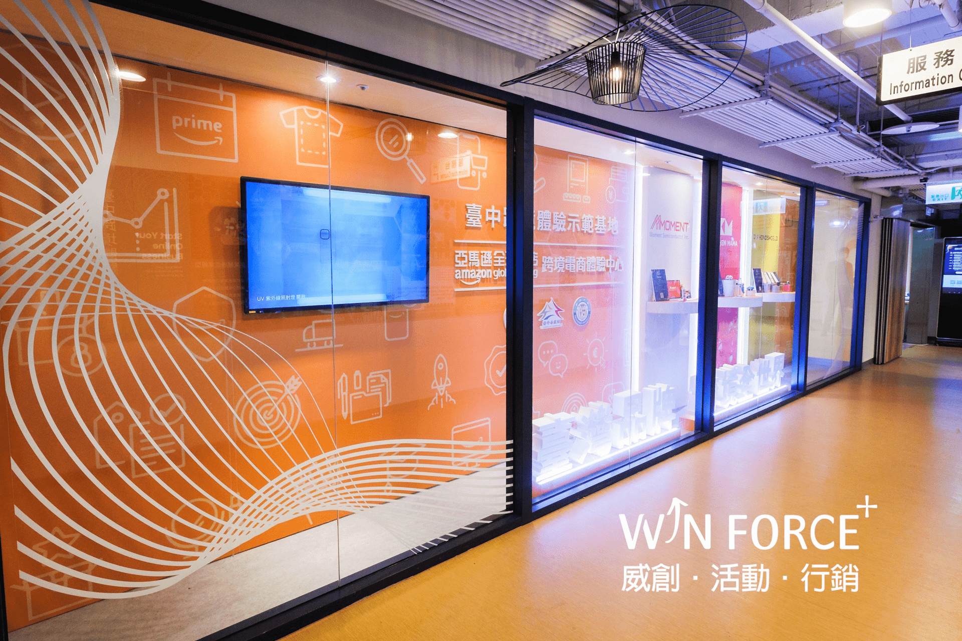 亞馬遜全球開店於台灣首座跨境體驗電商中心,坐落於台中市東協廣場的台中跨境體驗示範基地,以飛機航廈為主題,從洽談區至櫥窗區整體視覺設計至室內施工皆廣受現場參觀人士好評,尤其櫥窗區更是成為拍照行銷的熱點。