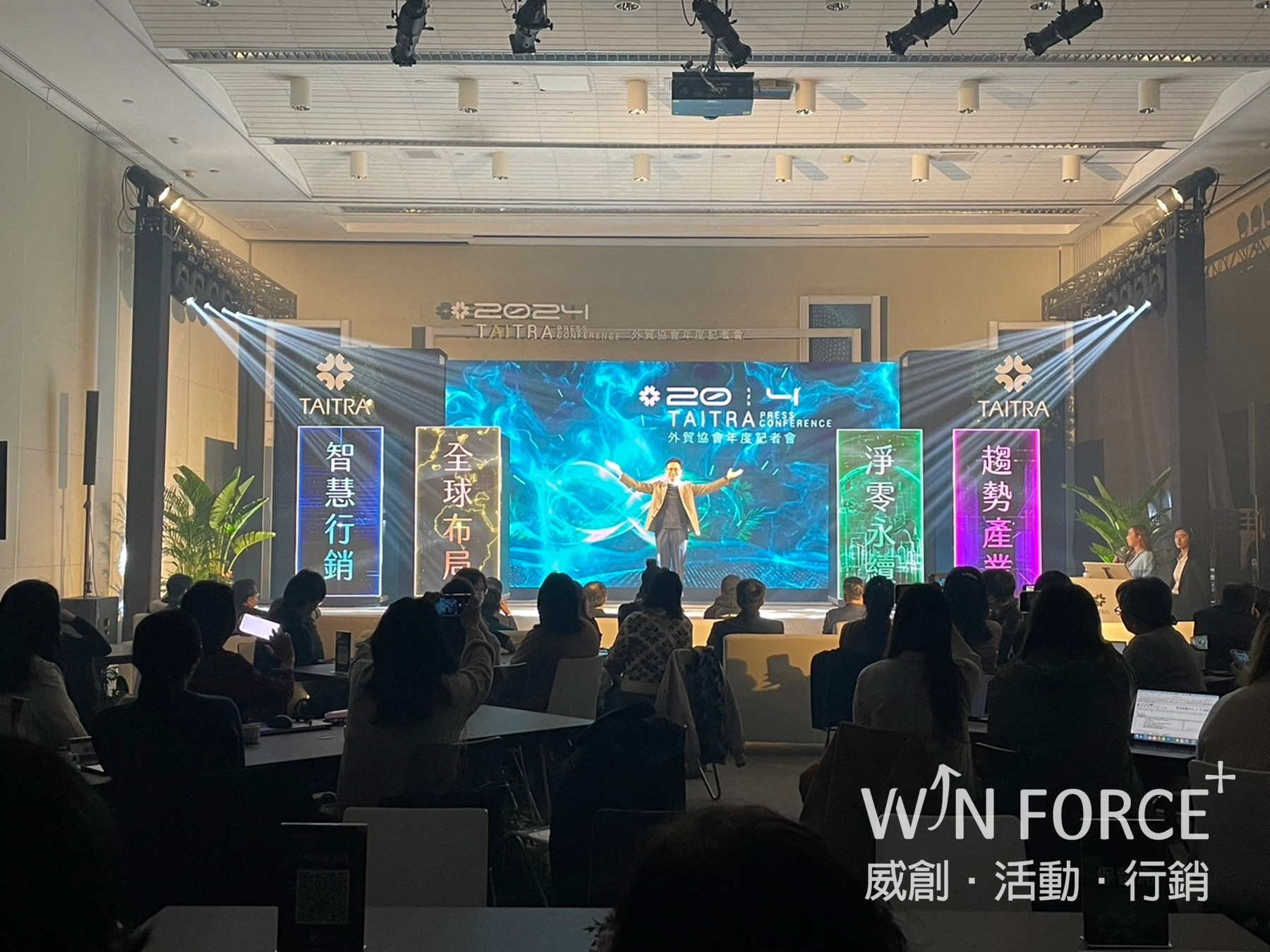 連續承辦外貿協會年度記者會今年已是第三年,每年都在挑戰不可能的任務,依據世界趨勢與議題,站在外貿協會的高度上思考如何讓董事長能在年度對外及媒體溝通表達過去的感謝同時,並傳達新年度的目標與願景,每一年的記者會都是對我們創意及團隊一項大考驗,不只是好,還要更好。