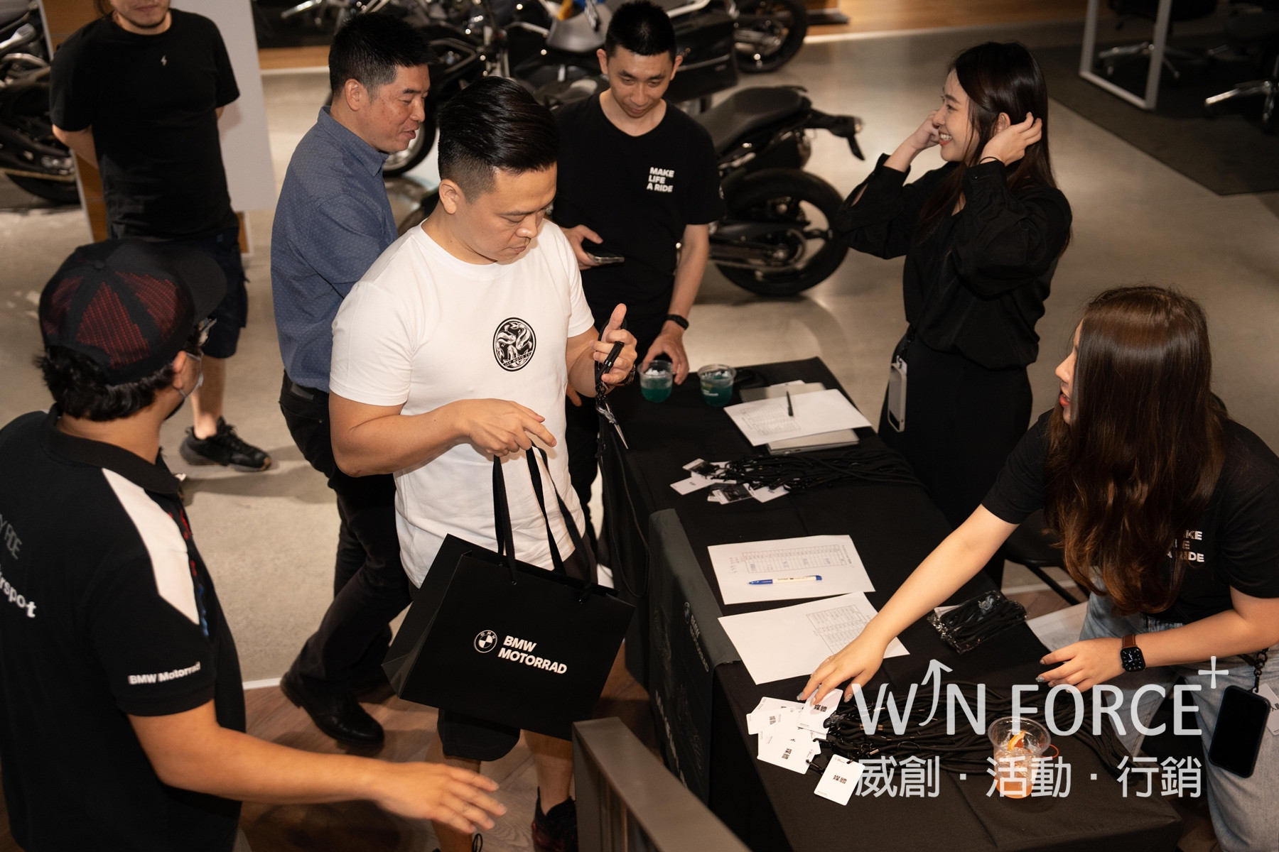 場地選在展示間貴賓空間舉辦,讓喜愛BMW MOTORRAD的車主也能欣賞各式重型機車車款,同時也為門市吸引老客戶回娘家的概念,創造車主互動與交流,同時也帶給大家第一手資訊。會場從入口動線引導,餐點客製及貴賓席間的佈置,搭配新車登場的動線規劃,帶給每位貴賓不同以往的感受。